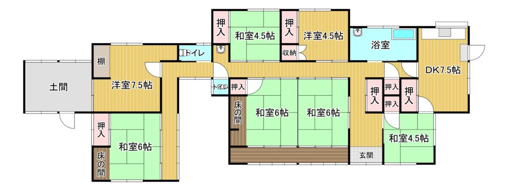 | 間取内容 | 【1階】DK7.5、洋7.5、洋4.5、和6×3、和4.5×2 | ||