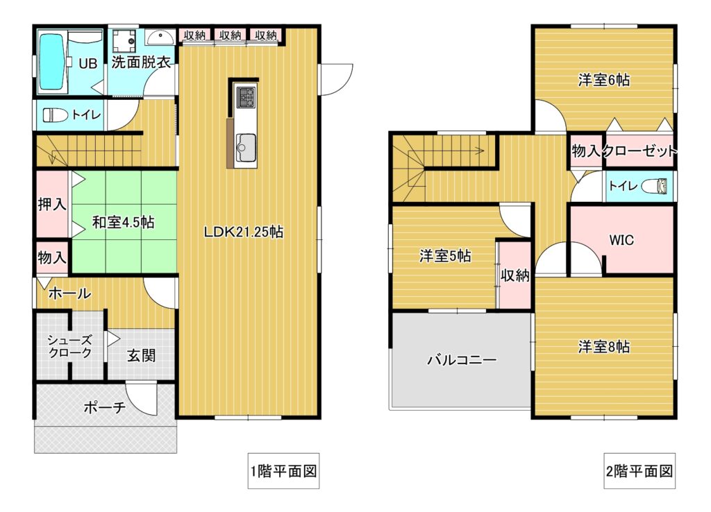 間取内容 【1階】LDK21.25、和4.5、【2階】洋8、洋6、洋5