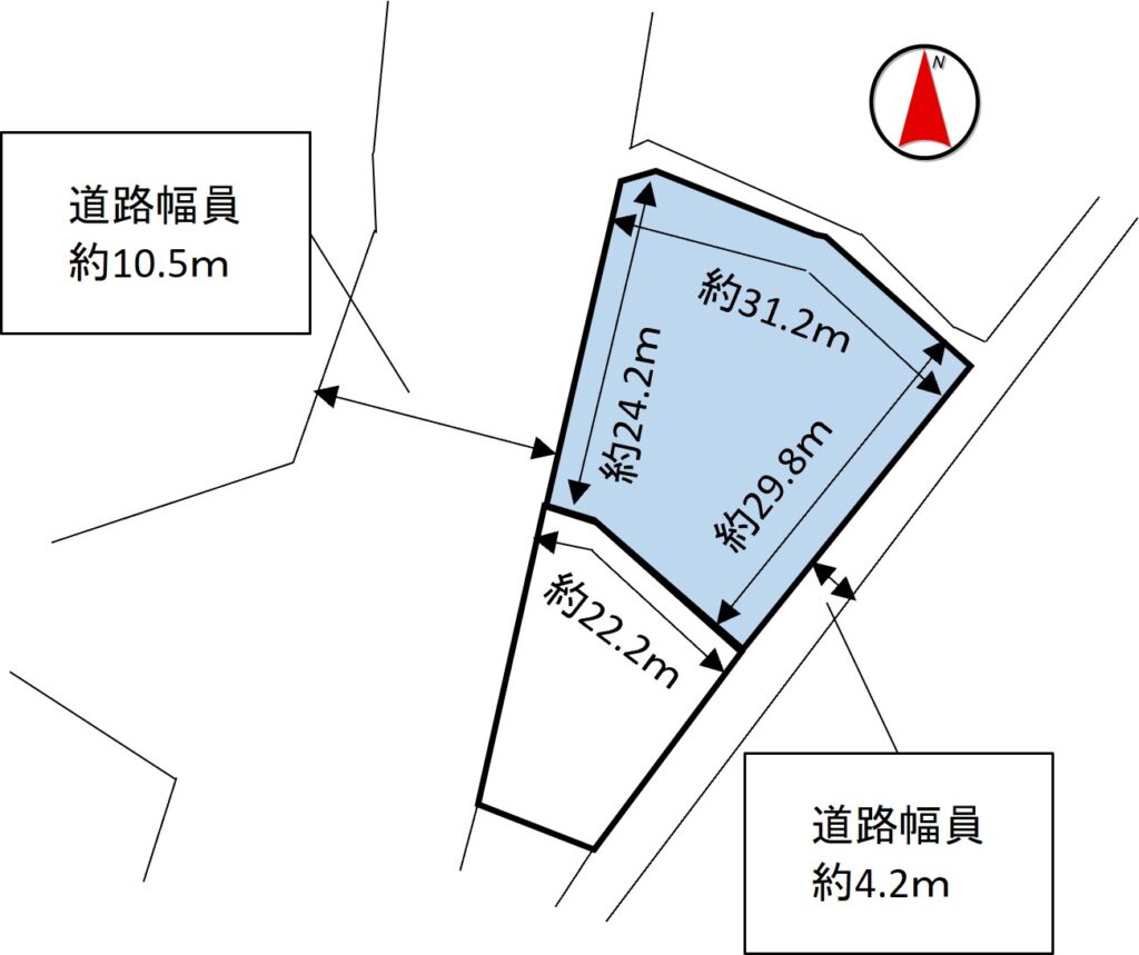 接道間口1 西面 約10.5m幅 公道に 約24.2mm