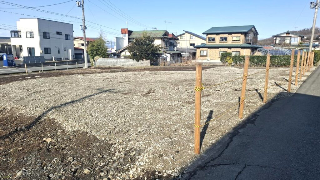 平家を建てるのにも充分。大通りに面した広い土地。