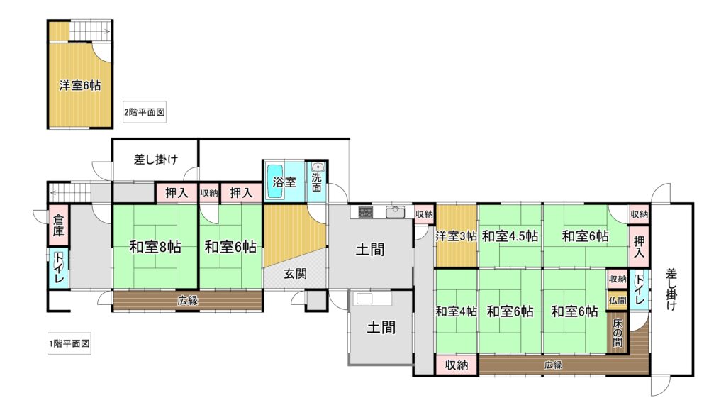 間取内容 【1階】DK土間、和8、和6×4、和4.5、和4、洋3 【2階】和6