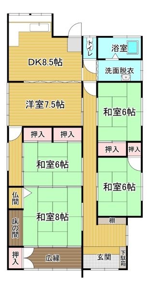 | 間取内容 | DK8.5、洋7.5、和8、和6×3 | ||