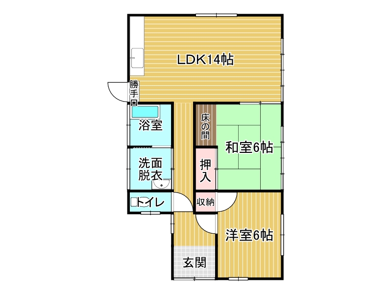 間取内容 2LDK:LDK14、和6、洋6