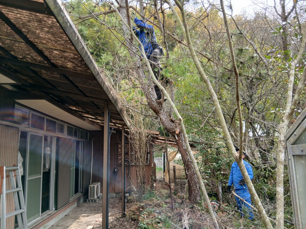山口県田布施町で遺品整理後の草刈りと庭木の剪定・伐採作業です。