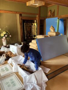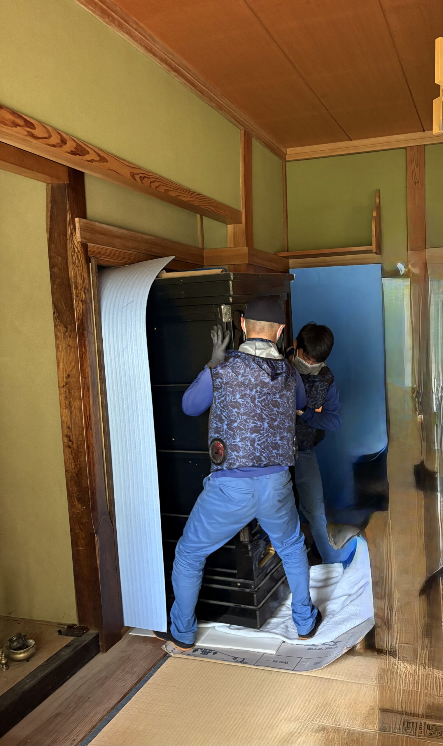 男性スタッフが、しっかり養生をした上で、仏壇を丁寧に出していきます。