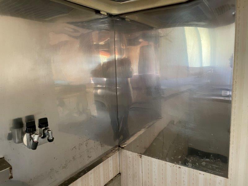売家の台所のガスまわりのお掃除です。 油汚れが何層にもなって固まっています。