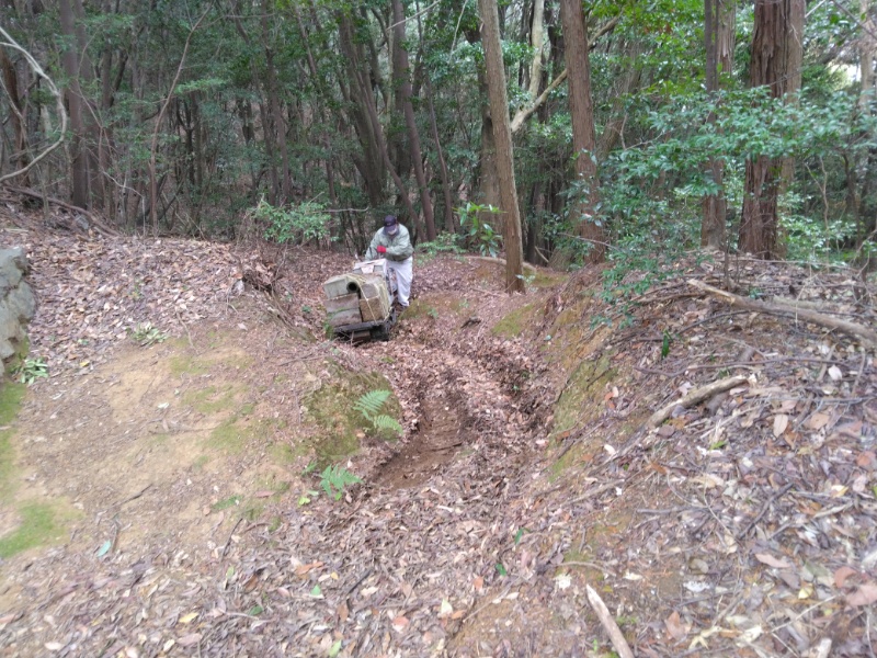 10分ほど急な坂道を登り、山の中へ、お墓じまい作業です。