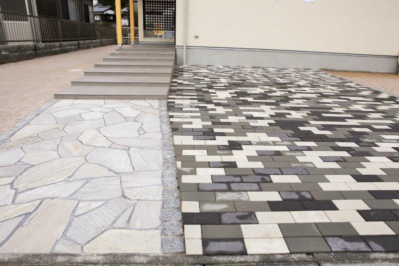 広々とした駐車場と玄関で、家族や来客のお出迎え。